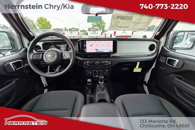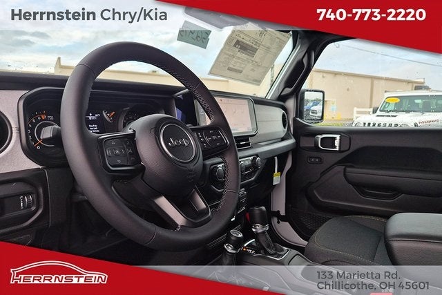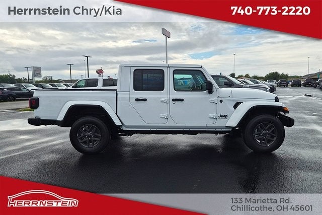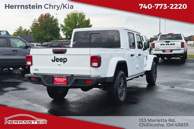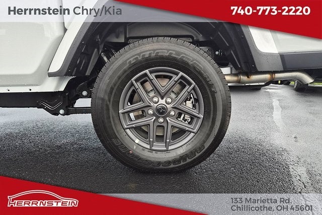 Herrnstein Auto Group is proud to offer this 2025 Jeep Gladiator Sport S in Bright White Clearcoat with Black Cloth. This Gladiator is very well equipped with Quick Order Package 24S Sport S (Advanced Brake Assist, Automatic Headlamps, Deep Tint Sunscreen Windows, Enhanced Adaptive Cruise Control, Full Speed Forward Collision Warning Plus, Normal Duty Plus Suspension, Power Heated Mirrors, Premium Wrapped Steering Wheel, Security Alarm, Sun Visors w/Illuminated Vanity Mirrors, and Wheels: 17 x 7.5 Gray), Dark Sky Appearance Package (Body Color Fender Flares (2-Piece), Daytime Running Lamp System, Mold In Color Bumper w/Gloss Black, and Performance Hood), 12.3 Touchscreen Display, 4G LTE Wi-Fi Hot Spot, Alexa Built-In, Apple CarPlay, Apple CarPlay/Android Auto, Body Color 3-Piece Hard Top, Freedom Panel Storage Bag, ParkView Rear Back-Up Camera, Rear Sliding Window, Rear Window Defroster, 110 MPH Vehicle Max Speed Calibration, 3.73 Rear Axle Ratio, 4-Wheel Disc Brakes, 8 Speakers, ABS brakes, Air Conditioning, AM/FM radio: SiriusXM, Brake assist, Cloth Low-Back Bucket Seats, Compass, Connectivity - US/Canada, Delay-off headlights, Driver door bin, Driver vanity mirror, Dual front impact airbags, Dual front side impact airbags, Electronic Stability Control, Front anti-roll bar, Front Bucket Seats, Front Center Armrest w/Storage, Front fog lights, Front License Plate Bracket, Front reading lights, Google Android Auto, Illuminated entry, Integrated roll-over protection, Low tire pressure warning, MOPAR All-Weather Slush Mats, MOPAR Plastic Door Sill Guards, MOPAR Spray In Bedliner, Normal Duty Suspension, Occupant sensing airbag, Outside temperature display, Overhead airbag, Panic alarm, Passenger door bin, Passenger vanity mirror, Power steering, Power windows, Radio data system, Radio: Uconnect 5 w/12.3 Display, Rear anti-roll bar, Rear reading lights, Remote keyless entry, Speed control, Split folding rear seat, Steering wheel mounted audio controls, Tachometer, Telescoping steering wheel, Tilt steering wheel, Traction control, Trip computer, USB Host Flip, Variably intermittent wipers, Voltmeter, and Wheels: 17 x 7.5 Black Steel Styled. 17/22 City/Highway MPG