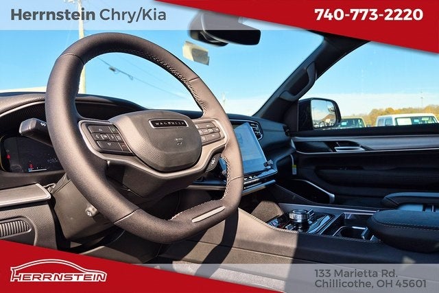 Herrnstein Auto Group is proud to offer this 2025 Jeep Wagoneer Series III in Velvet Red Pearlcoat with Black Leather. This Wagoneer is very well equipped with MOPAR Interior Protection Package (All-Season Floor Mats and Cargo Tray), Quick Order Package 25C Super (19 Speaker McIntosh Audio System, 3 Panel Sunroof, Black Roof, Luxury Front & Rear Floor Mats, Power Deployable Running Boards, Reversible Carpet/Vinyl Cargo Mat, Super Wagoneer Exterior Accents, and Wheels: 22 x 9.0 Machined Face w/Black Noise), Wagoneer Series III, 4D Sport Utility, 3.0L I6, 8-Speed Automatic, 4WD, Velvet Red Pearlcoat, Black Leather, 3rd row seats: bench, Auto High-beam Headlights, Auto-leveling suspension, Delay-off headlights, Driver's Seat Mounted Armrest, Four wheel independent suspension, Front Bucket Seats, Front fog lights, Fully automatic headlights, Heads-Up Display, Heated front seats, Heated rear seats, Leather Trimmed Bucket Seats, Memory seat, Navigation System, Normal Duty Suspension, Power driver seat, Power passenger seat, Power steering, Power windows, Rain sensing wipers, Rear window wiper, Reclining 3rd row seat, Remote keyless entry, Speed-sensing steering, Speed-Sensitive Wipers, Split folding rear seat, Steering wheel memory, Steering wheel mounted audio controls, Telescoping steering wheel, Tilt steering wheel, Traction control, Variably intermittent wipers, Ventilated front seats, 10 Speakers, 118 MPH Maximum Speed Calibration, 3.55 Rear Axle Ratio, 4-Wheel Disc Brakes, ABS brakes, Air Conditioning, Alloy wheels, AM/FM radio: SiriusXM with 360L, Anti-whiplash front head restraints, Apple CarPlay/Android Auto, Audio memory, Auto-dimming door mirrors, Auto-dimming Rear-View mirror, Automatic temperature control, Brake assist, Bumpers: body-color, Compass, Driver door bin, Driver vanity mirror, Dual front impact airbags, Dual front side impact airbags, Electronic Stability Control, Emergency communication system: Jeep Connect, Front anti-roll bar, Front Center Armrest w/Storage, Front dual zone A/C, Front License Plate Bracket, Front reading lights, Garage door transmitter, Genuine wood console insert, Genuine wood dashboard insert, Genuine wood door panel insert, Heated door mirrors, Heated steering wheel, Illuminated entry, Knee airbag, Low tire pressure warning, Occupant sensing airbag, Outside temperature display, Overhead airbag, Overhead console, Panic alarm, ParkView Rear Back-Up Camera, Passenger door bin, Passenger seat mounted armrest, Passenger vanity mirror, Power adjustable front head restraints, Power door mirrors, Power Liftgate, Radio data system, Radio: Uconnect 5 Nav w/10.1 Display, Rear air conditioning, Rear anti-roll bar, Rear dual zone A/C, Rear reading lights, Rear seat center armrest, Rear window defroster, Security system, Speed control, Tachometer, Trip computer, Turn signal indicator mirrors, Voltmeter, and Wheels: 20 x 9.0 Machine Face Painted Aluminum. 16/23 City/Highway MPG