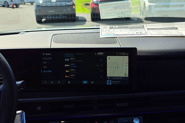 - Radio: AM/FM/HD Bose Premium Audio System -inc: 12 speakers including subwoofer, external amplifier, 12.3" wide touchscreen, wireless Apple CarPlay and Android Auto, Bluetooth® hands-free w/wireless audio streaming, dynamic voice recognition, USB connectivity, SiriusXM, wifi hotspot, Blue Link connected car system, navigation system including traffic flow w/incident data via HD Radio (HERE), OTA updates and rear seat quiet mode