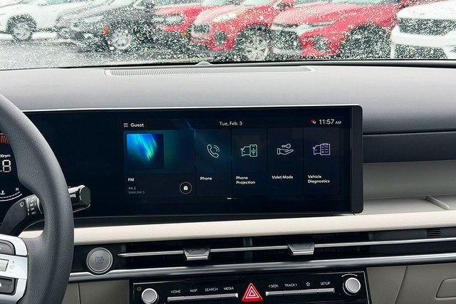 - Radio: AM/FM/HD Audio System -inc: 12.3" color touchscreen display, 6 speakers, SiriusXM satellite radio system (3-month trial subscription), wireless Apple CarPlay and Android Auto integration, controller OTA update capability, Blue Link connected car system and USB connectivity