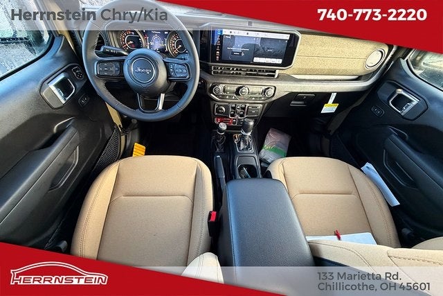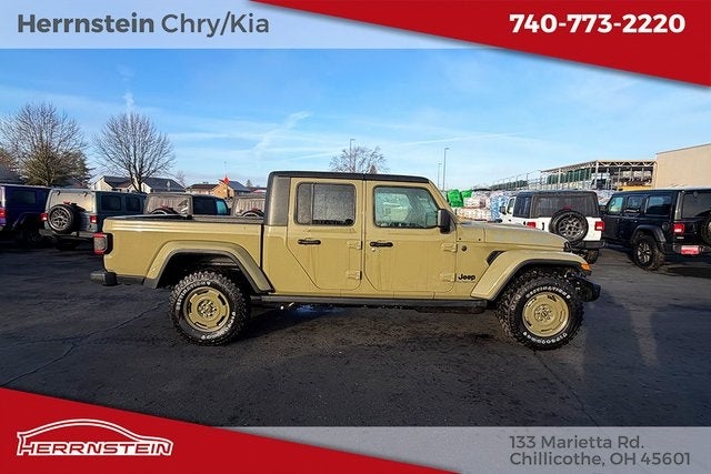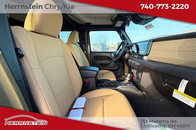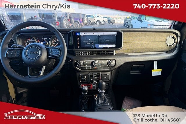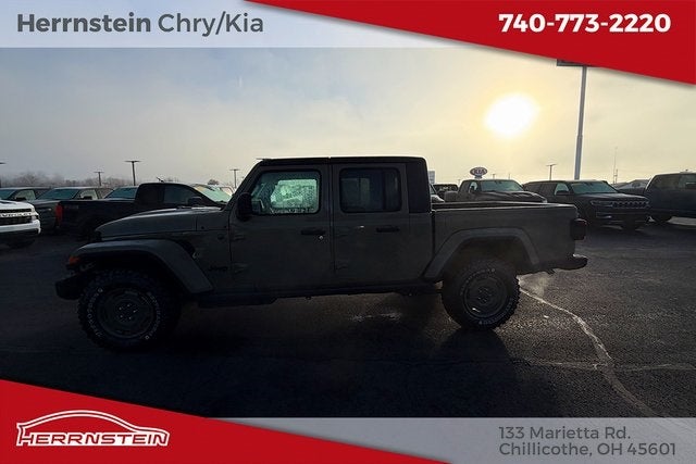 Herrnstein Auto Group is proud to offer this 2026 Jeep Gladiator in Green with Heritage Tan/Blk Clth Low. This Gladiator is very well equipped with 110 Mph Vehicle Max Speed Calibration, 12.3 Touchscreen Display, 3.73 Rear Axle Ratio, 4-Wheel Disc Brakes, 4G LTE Wi-Fi Hot Spot, 8 Speakers, ABS brakes, Air Conditioning, Alexa Built-in, AM/FM radio: SiriusXM with 360L, Apple CarPlay, Apple CarPlay/Android Auto, Brake assist, Compass, Connectivity - US/Canada, Delay-off headlights, Driver door bin, Driver vanity mirror, Dual front impact airbags, Dual front side impact airbags, Electronic Stability Control, For Details, Visit DriveUconnect.com, Front anti-roll bar, Front Bucket Seats, Front Center Armrest w/Storage, Front fog lights, Front reading lights, Google Android Auto, Illuminated entry, Integrated Center Stack Radio, Integrated roll-over protection, Low tire pressure warning, Normal Duty Suspension, Occupant sensing airbag, Outside temperature display, Overhead airbag, Panic alarm, ParkView Rear Back-Up Camera, Passenger door bin, Passenger vanity mirror, Power steering, Power windows, Radio data system, Radio: Uconnect 5 with 12.3 Display, Rear anti-roll bar, Rear reading lights, Remote keyless entry, SiriusXM Radio Service, SiriusXM with 360L, Speed control, Split folding rear seat, Steering wheel mounted audio controls, Tachometer, Telescoping steering wheel, Tilt steering wheel, Traction control, Trip computer, USB Host Flip, Variably intermittent wipers, Voltmeter, and Wheels: 17 x 7.5 Black Steel Styled. 17/22 City/Highway MPG