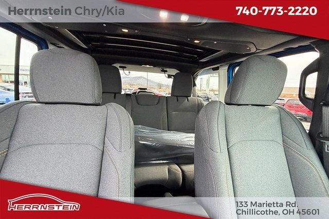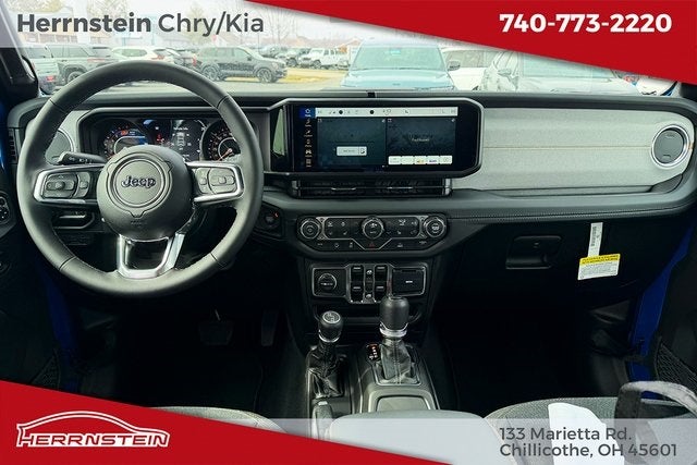 Herrnstein Auto Group is pleased to offer this 2026 Jeep Wrangler Sahara in Hydro Blue Pearl Coat with Black Cloth. This Wrangler is very well equipped with Quick Order Package 22G, 12.3 Touchscreen Display, 3.45 Overall Top Gear Ratio, 4-Wheel Disc Brakes, 4G LTE Wi-Fi Hot Spot, 8 Speakers, ABS brakes, Air Conditioning, Alloy wheels, AM/FM radio: SiriusXM with 360L, Apple CarPlay, Apple CarPlay/Android Auto, Automatic temperature control, Aux Battery, Brake assist, Cloth Low-Back Bucket Seats, Compass, Connectivity - US/Canada, Delay-off headlights, Driver door bin, Driver vanity mirror, Dual front impact airbags, Dual front side impact airbags, Electronic Stability Control, Emergency communication system: Jeep Connect, For More Info, Call 800-643-2112, Front anti-roll bar, Front Bucket Seats, Front Center Armrest w/Storage, Front dual zone A/C, Front fog lights, Front License Plate Bracket, Front reading lights, Fully automatic headlights, Google Android Auto, Heated door mirrors, Heated front seats, Heated steering wheel, Heavy Duty Suspension w/Gas Shocks, Illuminated entry, Integrated Center Stack Radio, Integrated roll-over protection, Low tire pressure warning, Non-Lock Fuel Cap w/o Discriminator, Occupant sensing airbag, Outside temperature display, Overhead airbag, Panic alarm, ParkView Rear Back-Up Camera, Passenger door bin, Passenger vanity mirror, Power door mirrors, Power steering, Power Top Quarter Window Storage Bag, Power windows, Radio data system, Radio: Uconnect 5 w/12.3 Display, Rear anti-roll bar, Rear reading lights, Rear Window Defroster, Rear Window Wiper/Washer, Remote keyless entry, Removable Rear Quarter Windows, Security system, SiriusXM Radio Service, SiriusXM w/360L, Sky One-Touch Power Top, Speed control, Split folding rear seat, Steering wheel mounted audio controls, Stop-Start Dual Battery System, Tachometer, Telescoping steering wheel, Tilt steering wheel, Traction control, Trip computer, Variably intermittent wipers, Voltmeter, and Wheels: 18 x 7.5 Machine/Painted Gray. 20/22 City/Highway MPG