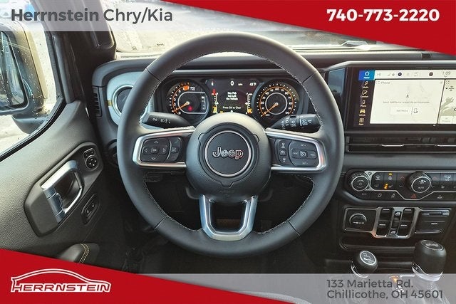 Herrnstein Auto Group is excited to offer this 2026 Jeep Wrangler Sahara in Black Clearcoat with Black Cloth. This Wrangler is very well equipped with Quick Order Package 22G, 12.3 Touchscreen Display, 3.45 Overall Top Gear Ratio, 4-Wheel Disc Brakes, 4G LTE Wi-Fi Hot Spot, 8 Speakers, ABS brakes, Air Conditioning, Alloy wheels, AM/FM radio: SiriusXM with 360L, Apple CarPlay, Apple CarPlay/Android Auto, Automatic temperature control, Aux Battery, Brake assist, Cloth Low-Back Bucket Seats, Compass, Connectivity - US/Canada, Delay-off headlights, Driver door bin, Driver vanity mirror, Dual front impact airbags, Dual front side impact airbags, Electronic Stability Control, Emergency communication system: Jeep Connect, For More Info, Call 800-643-2112, Front anti-roll bar, Front Bucket Seats, Front Center Armrest w/Storage, Front dual zone A/C, Front fog lights, Front License Plate Bracket, Front reading lights, Fully automatic headlights, Google Android Auto, Heated door mirrors, Heated front seats, Heated steering wheel, Heavy Duty Suspension w/Gas Shocks, Illuminated entry, Integrated Center Stack Radio, Integrated roll-over protection, Low tire pressure warning, MOPAR All-Weather Floor Mats, Non-Lock Fuel Cap w/o Discriminator, Occupant sensing airbag, Outside temperature display, Overhead airbag, Panic alarm, ParkView Rear Back-Up Camera, Passenger door bin, Passenger vanity mirror, Power door mirrors, Power steering, Power Top Quarter Window Storage Bag, Power windows, Radio data system, Radio: Uconnect 5 w/12.3 Display, Rear anti-roll bar, Rear reading lights, Rear Window Defroster, Rear Window Wiper/Washer, Remote keyless entry, Removable Rear Quarter Windows, Security system, SiriusXM Radio Service, SiriusXM w/360L, Speed control, Split folding rear seat, Steering wheel mounted audio controls, Stop-Start Dual Battery System, Tachometer, Telescoping steering wheel, Tilt steering wheel, Traction control, Trip computer, Variably intermittent wipers, Voltmeter, and Wheels: 18 x 7.5 Machine/Painted Gray. 20/22 City/Highway MPG