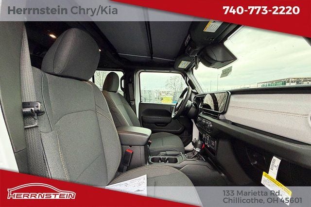 Herrnstein Auto Group is pumped up to offer this 2026 Jeep Wrangler Sport S in Bright White Clearcoat with Black Cloth. This Wrangler is very well equipped with LED Headlamp and Fog Lamp Group (Front LED Fog Lamps and LED Premium Reflector Headlamps), Quick Order Package 24S Sport S (Advanced Brake Assist, Automatic Headlamps, Corning Gorilla Glass, Deep Tint Sunscreen Windows, Enhanced Adaptive Cruise Control, Full Speed Forward Collision Warning Plus, Power Heated Mirrors, Premium Wrapped Steering Wheel, Security Alarm, Sun Visors with Illuminated Vanity Mirrors, and Wheels: 17 x 7.5 Gray), 12.3 Touchscreen Display, 3.45 Overall Top Gear Ratio, 4-Wheel Disc Brakes, 4G LTE Wi-Fi Hot Spot, 8 Speakers, ABS brakes, Air Conditioning, AM/FM radio: SiriusXM with 360L, Apple CarPlay, Apple CarPlay/Android Auto, Aux Battery, Brake assist, Compass, Connectivity - US/Canada, Delay-off headlights, Driver door bin, Driver vanity mirror, Dual front impact airbags, Dual front side impact airbags, Electronic Stability Control, For More Info, Call 800-643-2112, Front anti-roll bar, Front Bucket Seats, Front Center Armrest w/Storage, Front fog lights, Front reading lights, Google Android Auto, Illuminated entry, Integrated Center Stack Radio, Integrated roll-over protection, Low tire pressure warning, Non-Lock Fuel Cap Without Discriminator, Normal Duty Suspension, Occupant sensing airbag, Outside temperature display, Overhead airbag, Panic alarm, ParkView Rear Back-Up Camera, Passenger door bin, Passenger vanity mirror, Power steering, Power windows, Radio data system, Radio: Uconnect 5 with 12.3 Display, Rear anti-roll bar, Rear reading lights, Remote keyless entry, SiriusXM Radio Service, SiriusXM with 360L, Speed control, Split folding rear seat, Steering wheel mounted audio controls, Stop-Start Dual Battery System, Tachometer, Telescoping steering wheel, Tilt steering wheel, Traction control, Trip computer, Variably intermittent wipers, and Wheels: 17 x 7.5 Black Steel Styled.