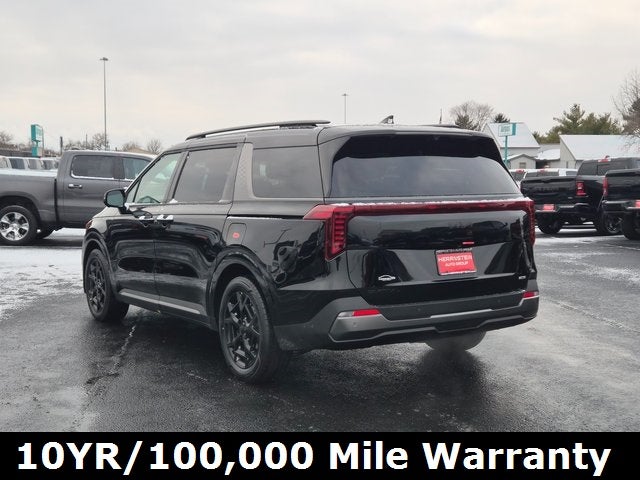 Herrnstein Auto Group is pleased to offer this 2026 Kia Carnival Hybrid SX Prestige in Aurora Black Pearl with Black Leather. This Carnival Hybrid is very well equipped with Rear Seat Entertainment Package (Dual Screen Rear Seat Entertainment System), SX Prestige Seat Package (2nd Row Laminated Windows, Ambient Lighting, and High Glossy Interior Trim), 1.6L I4 DGI Hybrid Turbocharged DOHC 16V LEV3-SULEV30, 12 Speakers, 3rd row seats: split-bench, 4-Wheel Disc Brakes, ABS brakes, Air Conditioning, Alloy wheels, AM/FM radio: SiriusXM, Apple CarPlay & Android Auto, Auto High-beam Headlights, Auto-dimming Rear-View mirror, Automatic temperature control, Brake assist, Bumpers: body-color, Compass, Delay-off headlights, Driver door bin, Driver vanity mirror, Dual front impact airbags, Dual front side impact airbags, Electronic Stability Control, Emergency communication system, Exterior Parking Camera Rear, Four wheel independent suspension, Front anti-roll bar, Front Bucket Seats, Front Center Armrest, Front dual zone A/C, Front fog lights, Front reading lights, Fully automatic headlights, Garage door transmitter: HomeLink, Heads-Up Display, Heated door mirrors, Heated front seats, Heated steering wheel, Illuminated entry, Knee airbag, Leather Seat Trim, Leather Shift Knob, Leather steering wheel, Low tire pressure warning, Luxury Carpeted Floor Mats, Memory seat, Navigation System, Occupant sensing airbag, Outside temperature display, Overhead airbag, Overhead console, Panic alarm, Passenger door bin, Passenger vanity mirror, Power 2nd-Row Moonroof, Power door mirrors, Power driver seat, Power Liftgate, Power moonroof, Power passenger seat, Power steering, Power windows, Rain sensing wipers, Rear air conditioning, Rear anti-roll bar, Rear reading lights, Rear window defroster, Rear window wiper, Reclining 3rd row seat, Remote keyless entry, Security system, Speed control, Speed-sensing steering, Split folding rear seat, Spoiler, Steering wheel mounted audio controls, Tachometer, Telescoping steering wheel, Tilt steering wheel, Traction control, Trip computer, Turn signal indicator mirrors, Variably intermittent wipers, Ventilated front seats, and Wheels: 19 Black D-Cut Customizing. 34/31 City/Highway MPG