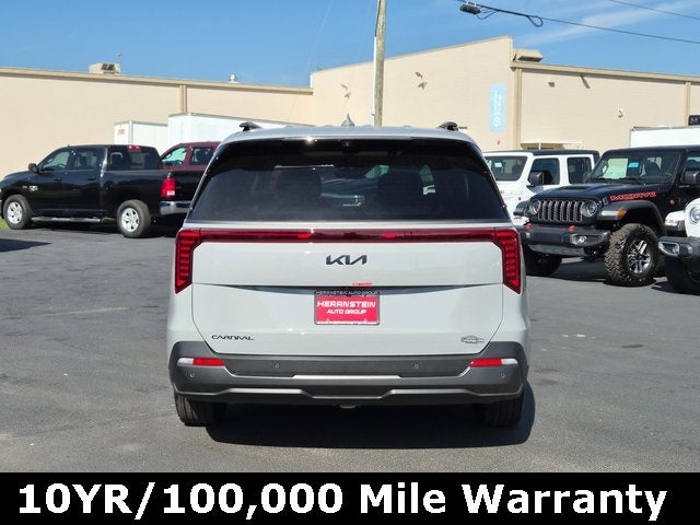Herrnstein Auto Group is proud to offer this 2026 Kia Carnival SX Prestige in Ceramic Silver with Off-Black Leather. This Carnival is very well equipped with 12 Speakers, 3.51 Axle Ratio, 3rd row seats: split-bench, 4-Wheel Disc Brakes, ABS brakes, Air Conditioning, Alloy wheels, AM/FM radio: SiriusXM, Apple CarPlay & Android Auto, Auto High-beam Headlights, Auto-dimming Rear-View mirror, Automatic temperature control, Brake assist, Bumpers: body-color, Compass, Delay-off headlights, Driver door bin, Driver vanity mirror, Dual front impact airbags, Dual front side impact airbags, Electronic Stability Control, Emergency communication system, Exterior Parking Camera Rear, Four wheel independent suspension, Front anti-roll bar, Front Bucket Seats, Front Center Armrest, Front dual zone A/C, Front fog lights, Front reading lights, Fully automatic headlights, Garage door transmitter: HomeLink, Heads-Up Display, Heated door mirrors, Heated front seats, Heated steering wheel, Illuminated entry, Knee airbag, Leather Shift Knob, Leather steering wheel, Low tire pressure warning, Memory seat, Navigation System, Occupant sensing airbag, Outside temperature display, Overhead airbag, Overhead console, Panic alarm, Passenger door bin, Passenger vanity mirror, Power 2nd-Row Moonroof, Power door mirrors, Power driver seat, Power Liftgate, Power moonroof, Power passenger seat, Power steering, Power windows, Pure Leather Seat Trim, Radio: AM/FM/HD Audio System, Rain sensing wipers, Rear air conditioning, Rear anti-roll bar, Rear reading lights, Rear window defroster, Rear window wiper, Reclining 3rd row seat, Remote keyless entry, Security system, Speed control, Speed-sensing steering, Split folding rear seat, Spoiler, Steering wheel mounted audio controls, Tachometer, Telescoping steering wheel, Tilt steering wheel, Traction control, Trip computer, Turn signal indicator mirrors, Variably intermittent wipers, Ventilated front seats, and Wheels: 7.5J x 19 Alloy Dark Edition. 18/26 City/Highway MPG