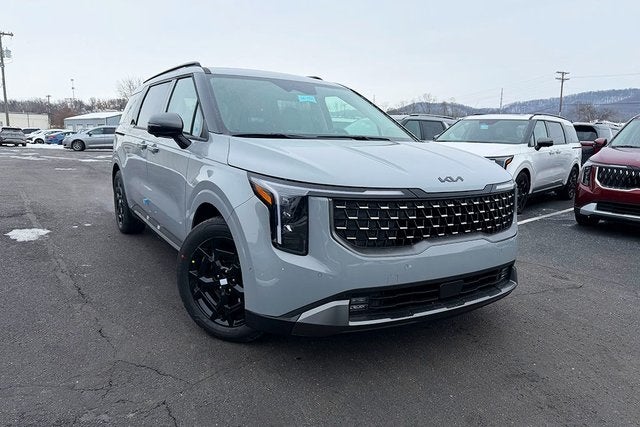 Herrnstein Auto Group is very proud to offer this 2026 Kia Carnival SX in Ceramic Silver with Off-Black Artificial Leather. This Carnival is very well equipped with SX Dark Edition Package (Wheels: 7.5J x 19 Alloy Dark Edition), 3.51 Axle Ratio, 3rd row seats: split-bench, 4-Wheel Disc Brakes, 8 Speakers, ABS brakes, Air Conditioning, Alloy wheels, AM/FM radio: SiriusXM, Apple CarPlay & Android Auto, Artificial Leather Seat Trim, Auto High-beam Headlights, Automatic temperature control, Brake assist, Bumpers: body-color, Carpeted Floor Mats (8-Passenger), Compass, Dark Edition Front Grille Trim, Dark Edition Mirror Caps, Delay-off headlights, Driver door bin, Driver vanity mirror, Dual front impact airbags, Dual front side impact airbags, Electronic Stability Control, Emergency communication system, Exterior Parking Camera Rear, Four wheel independent suspension, Front anti-roll bar, Front Bucket Seats, Front Center Armrest, Front dual zone A/C, Front fog lights, Front reading lights, Fully automatic headlights, Heated and Ventilated Front Bucket Seats, Heated door mirrors, Heated front seats, Illuminated entry, Knee airbag, Leather Shift Knob, Leather steering wheel, Low tire pressure warning, Memory seat, Navigation System, Occupant sensing airbag, Outside temperature display, Overhead airbag, Overhead console, Panic alarm, Passenger door bin, Passenger vanity mirror, Power 2nd-Row Moonroof, Power door mirrors, Power driver seat, Power Liftgate, Power moonroof, Power passenger seat, Power steering, Power windows, Radio: AM/FM/HD Audio System, Rain sensing wipers, Rear air conditioning, Rear anti-roll bar, Rear reading lights, Rear window defroster, Rear window wiper, Reclining 3rd row seat, Remote keyless entry, Security system, Speed control, Speed-sensing steering, Split folding rear seat, Spoiler, Steering wheel mounted audio controls, Tachometer, Telescoping steering wheel, Tilt steering wheel, Traction control, Trip computer, Turn signal indicator mirrors, Variably intermittent wipers, Ventilated front seats, and Wheels: 7.5J x 19 Black Alloy. 18/26 City/Highway MPG