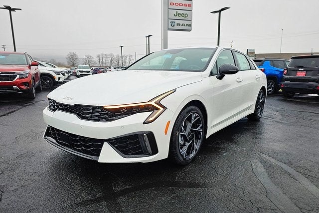 Herrnstein Auto Group is pleased to offer this 2026 Kia K5 GT-Line in Snow White Pearl with Black. This K5 is very well equipped with 4-Wheel Disc Brakes, 6 Speakers, ABS brakes, Air Conditioning, Alloy wheels, AM/FM radio: SiriusXM, Auto High-beam Headlights, Automatic temperature control, Brake assist, Bumpers: body-color, Delay-off headlights, Driver door bin, Driver vanity mirror, Dual front impact airbags, Dual front side impact airbags, Electronic Stability Control, Emergency communication system: Kia Connect (includes 1 year free trial), Four wheel independent suspension, Front anti-roll bar, Front Bucket Seats, Front Center Armrest, Front dual zone A/C, Front fog lights, Front reading lights, Fully automatic headlights, Heated door mirrors, Heated Front Bucket Seats, Heated front seats, Illuminated entry, Knee airbag, Leather Shift Knob, Leather steering wheel, Low tire pressure warning, Navigation System, Occupant sensing airbag, Outside temperature display, Overhead airbag, Overhead console, Panic alarm, Passenger door bin, Passenger vanity mirror, Power door mirrors, Power driver seat, Power steering, Power windows, Radio data system, Radio: AM/FM Audio System, Rear anti-roll bar, Rear seat center armrest, Rear side impact airbag, Rear window defroster, Remote keyless entry, Security system, Speed control, Speed-sensing steering, Split folding rear seat, Sport steering wheel, Steering wheel mounted audio controls, Tachometer, Telescoping steering wheel, Tilt steering wheel, Traction control, Trip computer, Turn signal indicator mirrors, Variably intermittent wipers, and Wheels: 18 x 7.5J Gloss Black Machined Finish Alloy.