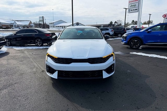 Herrnstein Auto Group is pleased to offer this 2026 Kia K5 GT-Line in Snow White Pearl with Black. This K5 is very well equipped with GT-Line Red Interior Package (SynTex Seat Trim), 4-Wheel Disc Brakes, 6 Speakers, ABS brakes, Air Conditioning, Alloy wheels, AM/FM radio: SiriusXM, Apple CarPlay & Android Auto, Auto High-beam Headlights, Automatic temperature control, Brake assist, Bumpers: body-color, Carpeted Floor Mats, Delay-off headlights, Driver door bin, Driver vanity mirror, Dual front impact airbags, Dual front side impact airbags, Electronic Stability Control, Emergency communication system: Kia Connect (includes 1 year free trial), Four wheel independent suspension, Front anti-roll bar, Front Bucket Seats, Front Center Armrest, Front dual zone A/C, Front fog lights, Front reading lights, Fully automatic headlights, Heated door mirrors, Heated Front Bucket Seats, Heated front seats, Heated steering wheel, Illuminated entry, Knee airbag, Leather Shift Knob, Leather steering wheel, Low tire pressure warning, Navigation System, Occupant sensing airbag, Outside temperature display, Overhead airbag, Overhead console, Panic alarm, Passenger door bin, Passenger vanity mirror, Power door mirrors, Power driver seat, Power steering, Power windows, Radio data system, Radio: AM/FM Audio System, Rear anti-roll bar, Rear seat center armrest, Rear side impact airbag, Rear window defroster, Remote keyless entry, Security system, Speed control, Speed-sensing steering, Split folding rear seat, Sport steering wheel, Steering wheel mounted audio controls, Tachometer, Telescoping steering wheel, Tilt steering wheel, Traction control, Trip computer, Turn signal indicator mirrors, Variably intermittent wipers, and Wheels: 18 x 7.5J Gloss Black Machined Finish Alloy. 24/33 City/Highway MPG