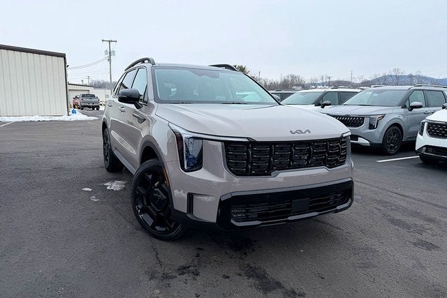 Herrnstein Auto Group is very proud to offer this 2026 Kia Sorento X-Line EX in Road Rider Brown with Black Artificial Leather. This Sorento is very well equipped with AWD, 12 Speakers, 3rd row seats: split-bench, 4-Wheel Disc Brakes, ABS brakes, Air Conditioning, All Weather Floor Mats, Alloy wheels, AM/FM radio: SiriusXM, Apple CarPlay & Android Auto, Auto High-beam Headlights, Auto-dimming Rear-View mirror, Automatic temperature control, Brake assist, Bumpers: body-color, Delay-off headlights, Driver door bin, Driver vanity mirror, Dual front impact airbags, Dual front side impact airbags, Electronic Stability Control, Emergency communication system: 911 Connect, Exterior Parking Camera Rear, Four wheel independent suspension, Front anti-roll bar, Front Bucket Seats, Front Center Armrest, Front dual zone A/C, Front fog lights, Front reading lights, Fully automatic headlights, Heated door mirrors, Heated Front Bucket Seats, Heated front seats, Illuminated entry, Knee airbag, Leather Shift Knob, Leather steering wheel, Low tire pressure warning, Navigation System, Occupant sensing airbag, Outside temperature display, Overhead airbag, Overhead console, Panic alarm, Passenger door bin, Passenger vanity mirror, Power door mirrors, Power driver seat, Power Liftgate, Power moonroof, Power passenger seat, Power steering, Power windows, Radio data system, Radio: AM/FM Standard Sound System, Rear anti-roll bar, Rear reading lights, Rear side impact airbag, Rear window defroster, Rear window wiper, Remote keyless entry, Security system, Speed control, Speed-sensing steering, Split folding rear seat, Spoiler, Steering wheel mounted audio controls, SynTex Artificial Leather Seat Trim, Tachometer, Telescoping steering wheel, Tilt steering wheel, Traction control, Trip computer, Turn signal indicator mirrors, Variably intermittent wipers, and Wheels: 20 Gloss Black x-Line Alloy. 20/27 City/Highway MPG