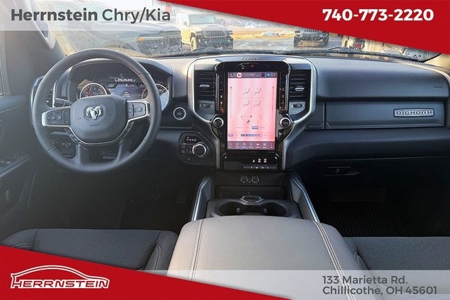 Herrnstein Auto Group is proud to offer this 2026 Ram 1500 Big Horn/Lone Star in Hydro Blue Pearlcoat with Black Cloth. This 1500 is very well equipped with Big Horn Level 2 Equipment Group (115V Auxiliary Power Outlet, 115V Auxiliary Rear Power Outlet, 12 Touchscreen Display, 2nd Row in Floor Storage Bins, 3 Rear Seat Head Restraints, 4 Way Front Headrests, 400W Inverter, 4G LTE Wi-Fi Hot Spot, 9 Amplified Speakers with Subwoofer, Air Conditioning ATC with Dual Zone Control, Apple CarPlay, Auto Power-Folding Mirrors, Auto-Dimming Exterior Driver Mirror, Auto-Dimming Rear-View Mirror, Black Exterior Mirrors, Black Premium Power Mirrors, Body Color Fender Flares, Bucket Seats, Center Console Parts Module, Cluster 7.0 TFT Color Display, Configurable Drive Mode, Connected Travel and Traffic Services, Connectivity - US/Canada, Convex Wide-Angle Exterior Mirror Insert, Deluxe Cloth Bucket Seats, Disassociated Touchscreen Display, Exterior Mirrors Courtesy Lamps, Exterior Mirrors with Heating Element, Exterior Mirrors with Supplemental Signals, Front Seat Back Map Pockets, Full Length Floor Console, Global Telematics Box Module, Glove Box Lamp, Google Android Auto, GPS Antenna Input, GPS Navigation, HD Radio, Heated Front Seats, Heated Steering Wheel, Integrated Center Stack Radio, Integrated Voice Command with Bluetooth®, Leather Wrapped Steering Wheel, LED Dome Lamp with on/Off Switch, LED Footwell Lighting, Manual Adjust 4-Way Front Passenger Seat, Media Hub with 2 Charge Only USBs, Overhead LED Lamps, Power 2-Way Driver Lumbar Adjust, Power Adjust 8-Way Driver Seat, Power Adjustable Pedals, Premium Overhead Console, Radio: Uconnect 5 Navigation with 12.0 Display, Rear 60/40 Folding Seat, Rear Center Armrest, Rear Power Sliding Window, Rear Window Defroster, Remote Tailgate Release, Security Alarm, SiriusXM Radio Service, SiriusXM with 360L, Steering Wheel Mounted Audio Controls, Sun Visors with Illuminated Vanity Mirrors, Universal Garage Door Opener, and USB Host Flip), Night Edition (Accent Color Door Handles, Accent Color Premium Power Mirrors, Accent Color Tailgate Handle, Anti-Spin Differential Rear Axle, Black Exterior Truck Badging, Black Headlamp Bezels, Black Interior Accents, Black Painted Exterior Mirrors Caps, Black Tail Lamp Bezels, Body Color Front Bumper, Body Color Rear Bumper with Step Pads, Dual Exhaust with Black Tips, Grille Black Surround Black Mesh, RAM Grille Badge - Black, and Wheels: 20 x 9.0 Aluminum Painted Clad), Quick Order Package 27Z Big Horn, 4-Wheel Disc Brakes, 48V Belt Starter Generator, 6 Speakers, ABS brakes, Air Conditioning, Alloy wheels, AM/FM radio, Apple CarPlay/Android Auto, Auto High-beam Headlights, Brake assist, Bumpers: chrome, Cloth Bucket Seats, Compass, Delay-off headlights, Driver door bin, Dual front impact airbags, Dual front side impact airbags, Electronic Stability Control, Front anti-roll bar, Front Bucket Seats, Front Center Armrest w/Storage, Front fog lights, Front License Plate Bracket, Front reading lights, Front wheel independent suspension, Fully automatic headlights,