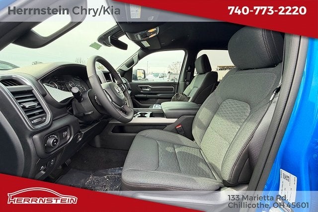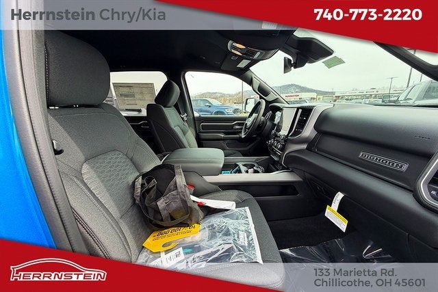 Herrnstein Auto Group is very proud to offer this 2026 Ram 1500 Big Horn/Lone Star in Hydro Blue Pearlcoat with Black Cloth. This 1500 is very well equipped with Big Horn Level 1 Equipment Group (115V Auxiliary Power Outlet, 2nd Row in Floor Storage Bins, 3 Rear Seat Head Restraints, 4 Way Front Headrests, 400W Inverter, Auto Power-Folding Mirrors, Auto-Dimming Exterior Driver Mirror, Auto-Dimming Rear-View Mirror, Black Exterior Mirrors, Black Premium Power Mirrors, Body Color Fender Flares, Bucket Seats, Center Console Parts Module, Convex Wide-Angle Exterior Mirror Insert, Deluxe Cloth Bucket Seats, Exterior Mirrors Courtesy Lamps, Exterior Mirrors with Heating Element, Exterior Mirrors with Supplemental Signals, Front Seat Back Map Pockets, Full Length Floor Console, Glove Box Lamp, Heated Front Seats, Heated Steering Wheel, Leather Wrapped Steering Wheel, Manual Adjust 4-Way Front Passenger Seat, Power 2-Way Driver Lumbar Adjust, Power Adjust 8-Way Driver Seat, Power Adjustable Pedals, Rear 60/40 Folding Seat, Rear Center Armrest, Rear Dome with on/Off Switch Lamp, Rear Power Sliding Window, Rear Window Defroster, SiriusXM Radio Service, SiriusXM Satellite Radio, Steering Wheel Mounted Audio Controls, Sun Visors with Illuminated Vanity Mirrors, and Universal Garage Door Opener), Quick Order Package 27Z Big Horn, 4-Wheel Disc Brakes, 48V Belt Starter Generator, 4G LTE Wi-Fi Hot Spot, 6 Speakers, ABS brakes, Air Conditioning, Alloy wheels, AM/FM radio, Apple CarPlay, Apple CarPlay/Android Auto, Auto High-beam Headlights, Brake assist, Bumpers: chrome, Cloth Bucket Seats, Compass, Connectivity - US/Canada, Delay-off headlights, Driver door bin, Dual front impact airbags, Dual front side impact airbags, Electronic Stability Control, Front anti-roll bar, Front Bucket Seats, Front Center Armrest w/Storage, Front fog lights, Front License Plate Bracket, Front reading lights, Front wheel independent suspension, Fully automatic headlights, Global Telematics Box Module, Google Android Auto, GPS Antenna Input, Heated door mirrors, Illuminated entry, Integrated Center Stack Radio, Integrated Voice Command with Bluetooth®, Low tire pressure warning, Manual Adjust 4-Way Driver Seat, Manual Folding Exterior Mirrors, Occupant sensing airbag, Outside temperature display, Overhead airbag, Overhead console, Panic alarm, ParkView Rear Back-Up Camera, Passenger door bin, Passenger vanity mirror, Power door mirrors, Power steering, Power windows, Radio data system, Radio: Uconnect 5 W with 8.4 Display, RAM Grille Badge - Chrome, Rear anti-roll bar, Rear step bumper, Remote keyless entry, Speed control, Supplier Part Tracking (J-1), Tachometer, Telescoping steering wheel, Tilt steering wheel, Traction control, Trip computer, USB Host Flip, Variably intermittent wipers, Voltmeter, and Wheels: 18 x 8 Cast-Aluminum Painted. 16/20 City/Highway MPG