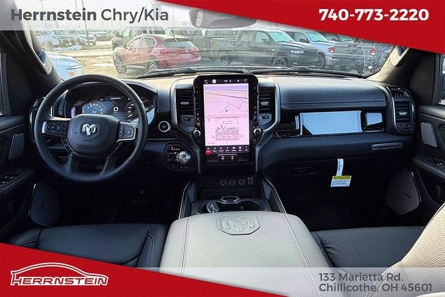 Herrnstein Auto Group is very proud to offer this 2026 Ram 1500 Rebel in Canyon Lake with Black Leather. This 1500 is very well equipped with Bed Utility Group (Exterior 115V AC Outlet, MOPAR 4 Adjustable Cargo Tie-Down Hooks, and MOPAR Spray in Bedliner), Quick Order Package 21W Rebel, Rebel Level 2 Equipment Group (115V Auxiliary Rear Power Outlet, 14.4 Touchscreen Display, 2-Door Passive Entry, Front Door Locks, 4G LTE Wi-Fi Hot Spot, Accent Color Door Handles, Accent Color Premium Power Mirrors, Accent Color Tailgate Handle, Apple CarPlay, Auto Power-Folding Mirrors, Auto-Dimming Exterior Driver Mirror, Black Painted Exterior Mirrors Caps, Connected Travel and Traffic Services, Connectivity - US/Canada, Convex Wide-Angle Exterior Mirror Insert, Disassociated Touchscreen Display, Driver Seat Memory, Dual Wireless Charging Pad, Exterior Mirrors Approach Lamps, Exterior Mirrors Courtesy Lamps, Exterior Mirrors with Heating Element, Exterior Mirrors with Memory, Exterior Mirrors with Supplemental Signals, Front Passenger Interactive Display, Global Telematics Box Module, Google Android Auto, GPS Antenna Input, GPS Navigation, Harman/Kardon 19 Speaker Premium Sound, HD Radio, Heated Second Row Seats, Integrated Center Stack Radio, Integrated Voice Command with Bluetooth®, Media Hub with 2 Charge Only USBs, Off-Road Information Pages, Power 2-Way Passenger Lumbar Adjust, Power Adjust 8-Way Front Passenger Seat, Power Adjustable Pedals with Memory, Power Tailgate, Proximity Approach/Departure Lamps, Radio: Uconnect 5 Nav with 14.4 Display, Radio/Driver Seat/Mirrors/Pedals Memory, Rain Sensitive Windshield Wipers, Rear Window Defroster, Security Alarm, SiriusXM Radio Service, SiriusXM with 360L, Smartphone as a Key Capable, and USB Host Flip), 10 Speakers, 3.92 Rear Axle Ratio, 4 Way Front Headrests, 4-Wheel Disc Brakes, ABS brakes, Active Noise Control System, Air Conditioning, Alloy wheels, AM/FM radio: SiriusXM with 360L, Apple CarPlay/Android Auto, Auto High-beam Headlights, Auto-dimming Rear-View mirror, Automatic temperature control, Black Exterior Mirrors, Brake assist, Bucket Seats, Cloth/Vinyl Bucket Seats, Compass, Delay-off headlights, Driver door bin, Driver vanity mirror, Dual front impact airbags, Dual front side impact airbags, Electronic Stability Control, Front anti-roll bar, Front Bucket Seats, Front Center Armrest w/Storage, Front dual zone A/C, Front fog lights, Front License Plate Bracket, Front reading lights, Front Seat Back Map Pockets, Front wheel independent suspension, Full Length Upgraded Floor Console, Fully automatic headlights, Garage door transmitter, Heated door mirrors, Heated Front Seats, Heated front seats, Heated Steering Wheel, Heated steering wheel, Illuminated entry, Leather steering wheel, Low tire pressure warning, Manual Folding Exterior Mirrors, Manufacturer's Statement of Origin, Navigation System, Occupant sensing airbag, Outside temperature display, Overhead airbag, Overhead console, Panic alarm, ParkView Rear Back-Up Camera, Passenger door bin, Passenger vanity mirror, Power 2-Way Driver