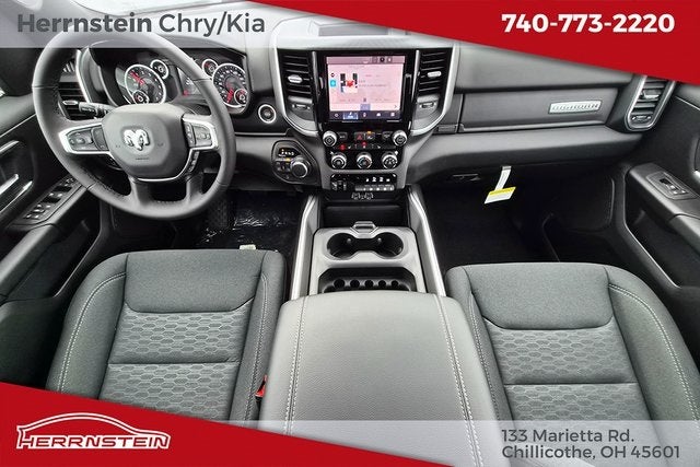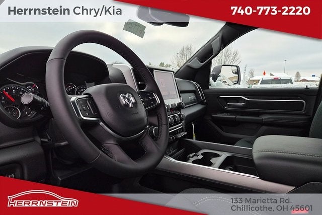 Herrnstein Auto Group is pleased to offer this 2026 Ram 1500 Big Horn/Lone Star in Diamond Black Crystal Pearlcoat with Black Cloth. This 1500 is very well equipped with Big Horn Level 1 Equipment Group (115V Auxiliary Power Outlet, 3 Rear Seat Head Restraints, 4 Way Front Headrests, 400W Inverter, Auto Power-Folding Mirrors, Auto-Dimming Exterior Driver Mirror, Auto-Dimming Rear-View Mirror, Black Exterior Mirrors, Black Premium Power Mirrors, Body Color Fender Flares, Bucket Seats, Center Console Parts Module, Convex Wide-Angle Exterior Mirror Insert, Deluxe Cloth Bucket Seats, Exterior Mirrors Courtesy Lamps, Front Seat Back Map Pockets, Full Length Floor Console, Glove Box Lamp, Heated Front Seats, Heated Steering Wheel, Leather Wrapped Steering Wheel, Manual Adjust 4-Way Front Passenger Seat, Power 2-Way Driver Lumbar Adjust, Power Adjust 8-Way Driver Seat, Power Adjustable Pedals, Rear 60/40 Folding Seat, Rear Power Sliding Window, Rear Window Defroster, SiriusXM Radio Service, SiriusXM Satellite Radio, Steering Wheel Mounted Audio Controls, and Universal Garage Door Opener), Night Edition (Accent Color Door Handles, Accent Color Premium Power Mirrors, Accent Color Tailgate Handle, Anti-Spin Differential Rear Axle, Black Exterior Truck Badging, Black Headlamp Bezels, Black Interior Accents, Black Painted Exterior Mirrors Caps, Black RAM Grille Badge, Black Tail Lamp Bezels, Body Color Front Bumper, Grille Black Surround Black Mesh, and Wheels: 20 x 9 Aluminum Painted Clad), Quick Order Package 23Z Big Horn, 3.21 Rear Axle Ratio, 4-Wheel Disc Brakes, 4G LTE Wi-Fi Hot Spot, 6 Speakers, ABS brakes, Air Conditioning, Alloy wheels, AM/FM radio, Apple CarPlay, Apple CarPlay/Android Auto, Auto High-beam Headlights, Brake assist, Bumpers: chrome, Chrome RAM Grille Badge, Cloth Bucket Seats, Compass, Connectivity - US/Canada, Delay-off headlights, Driver door bin, Dual front impact airbags, Dual front side impact airbags, Electronic Stability Control, Front anti-roll bar, Front Bucket Seats, Front Center Armrest w/Storage, Front fog lights, Front License Plate Bracket, Front reading lights, Front wheel independent suspension, Fully automatic headlights, Google Android Auto, GPS Antenna Input, Heated door mirrors, Illuminated entry, Integrated Center Stack Radio, Low tire pressure warning, Manual Adjust 4-Way Driver Seat, Manual Folding Exterior Mirrors, Manufacturer's Statement of Origin, Occupant sensing airbag, Outside temperature display, Overhead airbag, Overhead console, Panic alarm, ParkView Rear Back-Up Camera, Passenger door bin, Passenger vanity mirror, Power door mirrors, Power steering, Power windows, Radio data system, Rear anti-roll bar, Rear step bumper, Remote keyless entry, Speed control, Supplier Part Tracking (J-1), Tachometer, Telescoping steering wheel, Tilt steering wheel, Traction control, Trailer Brake Control, Trip computer, USB Host Flip, Variably intermittent wipers, Voltmeter, and Wheels: 18 x 8 Cast-Aluminum Painted. 19/24 City/Highway MPG