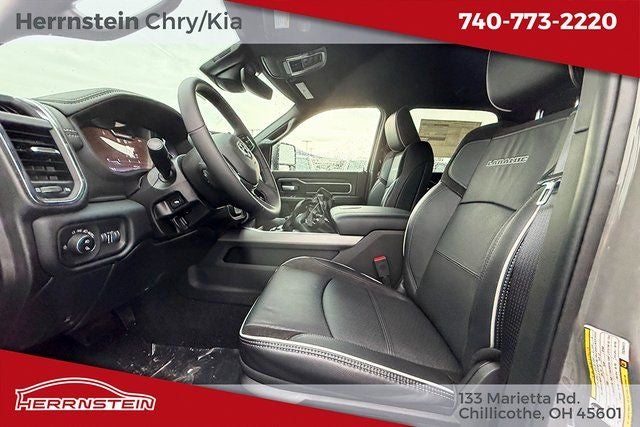 Herrnstein Auto Group is excited to offer this 2026 Ram 2500 Laramie in Ceramic Gray Clearcoat with Black Leather. This 2500 is very well equipped with Laramie Level 1 Plus Equipment Group (#1 Seat Foam Cushion, 115V Auxiliary Rear Power Outlet, 2 Way Rear Headrest Seat, 2nd Row in Floor Storage Bins, 4 Way Front Headrests, Active Lane Management System, Adaptive Steering System, Anti-Spin Differential Rear Axle, Auto Adjust in Reverse Exterior Mirrors, Auto Dim Exterior Mirror, Auto High Beam Headlamp Control, Auto Power-Folding Mirrors, Auto-Dimming Exterior Passenger Mirror, Bucket Seats, Center Stop Lamp with Cargo View Camera, Chrome Exterior Mirrors, Drowsy Driver Detection, Dual Wireless Charging Pad, Exterior Mirrors Courtesy Lamps, Exterior Mirrors with Heating Element, Exterior Mirrors with Memory, Exterior Mirrors with Supplemental Signals, Foam Bottle Insert (door Trim Panel), Folding Flat Load Floor Storage, Forward and Reverse Utility Lights, Front Seat Back Map Pockets, Full Length Upgraded Floor Console, Heated Front Seats, Heated Steering Wheel, High Back Seats, Leather Trimmed Bucket Seats, LED Bed Lighting, Mirror Running Lights, MOPAR Deployable Bed Step, MOPAR Spray in Bedliner, Power 2-Way Driver Lumbar Adjust, Power 2-Way Passenger Lumbar Adjust, Power Adjust 8-Way Driver Seat, Power Adjust 8-Way Front Passenger Seat, Power Adjust Mirrors, Power Adjustable Pedals with Memory, Power Heated Fold Telescopic Mirrors with Memory, Power Telescoping Mirrors, Power-Adjustable Convex Aux Mirrors, Radio/Driver Seat/Mirrors/Pedals Memory, Rain Sensitive Windshield Wipers, Rear 60/40 Folding Seat, Remote Tailgate Release, Traffic Sign Recognition, and Ventilated Front Seats), Night Edition (Black Exterior Mirrors, Black Exterior Truck Badging, Black Wheel Center Hub, Body Color Grille-Surround, Gloss Black Grille Billets/Accents, Sport Performance Hood, and Wheels: 20 x 8.0 Black Painted Aluminum), Quick Order Package 24H Laramie, 10 Speakers, 4-Wheel Disc Brakes, 4G LTE Wi-Fi Hot Spot, 5th Wheel/Gooseneck Towing Prep Group, ABS brakes, Air Conditioning, Alexa Built-in, Alloy wheels, AM/FM radio: SiriusXM with 360L, Apple CarPlay, Apple CarPlay/Android Auto, Auto-dimming Rear-View mirror, Automatic temperature control, Brake assist, Bumpers: body-color, Clearance Lamps, Compass, Connected Travel and Traffic Services, Connectivity - US/Canada, Delay-off headlights, Disassociated Touchscreen Display, Driver door bin, Driver vanity mirror, Dual front impact airbags, Dual front side impact airbags, Electronic Stability Control, Emergency Vehicle Alert System (EVAS), For Details, Visit DriveUconnect.com, For More Info, Call 800-643-2112, Front anti-roll bar, Front Center Armrest w/Storage, Front dual zone A/C, Front fog lights, Front License Plate Bracket, Front reading lights, Fully automatic headlights, Garage door transmitter, Global Telematics Box Module, Google Android Auto, GPS Antenna Input, GPS Navigation, HD Radio, Heated door mirrors, Heated front seats, Heated steering wheel, Illuminated entry, Integrated Voice C