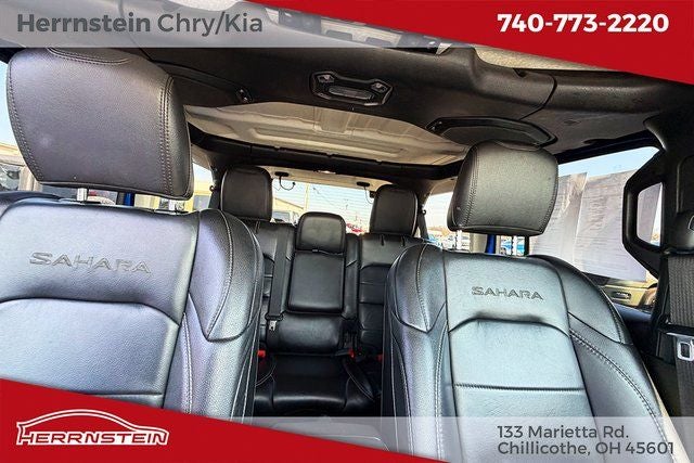 Herrnstein Auto Group is excited to offer this 2019 Jeep Wrangler Unlimited Sahara in Ocean Blue with Cloth. This Wrangler is very well equipped with 1 Owner, Accident Free History Report, Alloy Wheels, XM/Sirius Satellite Radio, iPod / USB Port, Auxiliary Audio Port, Backup Camera, Touchscreen Control Center, uConnect, Bluetooth®, Voice Recognition, Fog Lights, Remote Start, Heated Mirrors, and Blind Spot Monitor ABS brakes, Alloy wheels, Compass, Electronic Stability Control, Front dual zone A/C, Heated door mirrors, Illuminated entry, Low tire pressure warning, ParkView Rear Back-Up Camera, Remote keyless entry, Traction control, 3.45 Rear Axle Ratio, 4-Wheel Disc Brakes, 8 Speakers, Air Conditioning, AM/FM radio: SiriusXM, Apple CarPlay/Android Auto, Automatic temperature control, Brake assist, Cloth Low-Back Bucket Seats, Delay-off headlights, Driver door bin, Driver vanity mirror, Dual front impact airbags, Dual front side impact airbags, Front anti-roll bar, Front Bucket Seats, Front Center Armrest w/Storage, Front fog lights, Front reading lights, Fully automatic headlights, Garage door transmitter, Heavy Duty Suspension w/Gas Shocks, Integrated roll-over protection, Leather steering wheel, Non-Lock Fuel Cap w/o Discriminator, Occupant sensing airbag, Outside temperature display, Panic alarm, Passenger door bin, Passenger vanity mirror, Power door mirrors, Power steering, Power windows, Radio data system, Radio: Uconnect 4 w/7 Display, Rear anti-roll bar, Rear reading lights, Security system, Speed control, Split folding rear seat, Steering wheel mounted audio controls, Tachometer, Telescoping steering wheel, Tilt steering wheel, Trip computer, Variably intermittent wipers, Voltmeter, and Wheels: 18 x 7.5 Polished w/Gray Spokes.