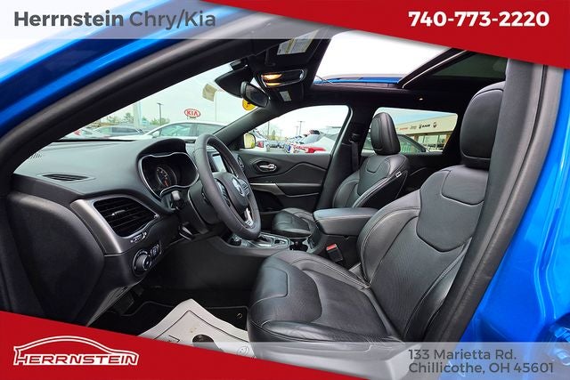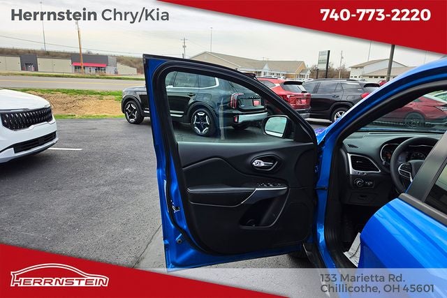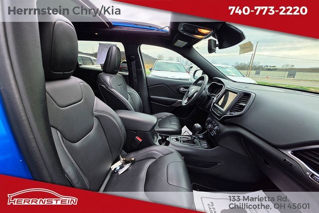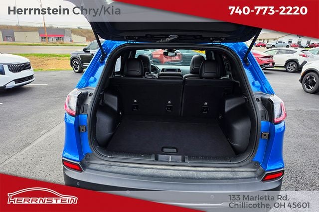 Herrnstein Auto Group is pleased to offer this 2021 Jeep Cherokee Latitude Lux in Hydro Blue Pearlcoat with Black Leather. This Cherokee is very well equipped with 1 Owner, Accident Free History Report, Alloy Wheels, XM/Sirius Satellite Radio, iPod / USB Port, Auxiliary Audio Port, Backup Camera, Touchscreen Control Center, Bluetooth®, Voice Recognition, Apple CarPlay, Android Auto, Fog Lights, Remote Start, Heated Steering Wheel, Heated Seats, Lane Keeping Assist, and Blind Spot Monitor Quick Order Package 26U 80th (8.4 Touchscreen Display, Air Conditioning ATC w/Dual Zone Control, Anodized Gun Metal Interior Accents, Berber Floor Mats w/80th Anniversary Tag, Black Day Light Opening Moldings, Cluster 7 TFT Color Display, Granite Crystal Exterior Accents, Granite Crystal Exterior Badging, Granite Crystal Grille Surrounds, Granite Crystal Rear Fascia Applique, Granite Crystal Roof Rails, Humidity Sensor, Jeep 80th Anniversary Badges, Jeep 80th Anniversary Edition, Jeep 80th Anniversary Instrumental Panel Applique, Leather Trimmed Bucket Seats, Light Tungsten Interior Accents, Power Front/Fixed Rear Full Sunroof, Premium Air Filter, Radio: Uconnect 4 w/8.4 Display, Rear Fascia Lower Valance Matte Black, and Wheels: 19 x 7.5 Granite Crystal Aluminum), 3.734 Axle Ratio, 4-Wheel Disc Brakes, 6 Speakers, ABS brakes, Air Conditioning, Alloy wheels, AM/FM radio: SiriusXM, Anti-whiplash front head restraints, Apple CarPlay/Android Auto, AutoStick Automatic Transmission, Auxiliary Transmission Oil Cooler, Brake assist, Bumpers: body-color, Compass, Delay-off headlights, Driver door bin, Driver vanity mirror, Dual Bright Exhaust Tips, Dual front impact airbags, Dual front side impact airbags, Electronic Stability Control, Engine Oil Cooler, Four wheel independent suspension, Front anti-roll bar, Front Bucket Seats, Front Center Armrest, Front fog lights, Front License Plate Bracket, Front reading lights, Fully automatic headlights, Heated door mirrors, Heated front seats, Heated steering wheel, Illuminated entry, Knee airbag, Leather Shift Knob, Liquid Titanium Door Trim Appliques, Low tire pressure warning, Manuf Statement of Origin, Normal Duty Suspension, Occupant sensing airbag, Outside temperature display, Overhead airbag, Overhead console, Panic alarm, ParkView Rear Back-Up Camera, Passenger door bin, Passenger vanity mirror, Power door mirrors, Power driver seat, Power passenger seat, Power steering, Power windows, Premium Leather Trimmed Bucket Seats, Radio data system, Radio: Uconnect 4 w/7 Display, Rain sensing wipers, Rear anti-roll bar, Rear reading lights, Rear seat center armrest, Rear side impact airbag, Rear window defroster, Rear window wiper, Remote keyless entry, Speed control, Speed-sensing steering, Split folding rear seat, Spoiler, Steering wheel mounted audio controls, Stop-Start Multiple VSM System, Tachometer, Telescoping steering wheel, Tilt steering wheel, Traction control, Trip computer, Turn signal indic