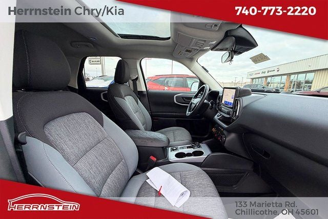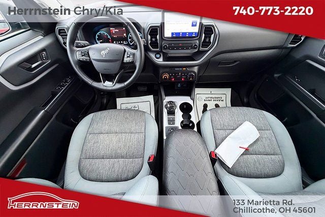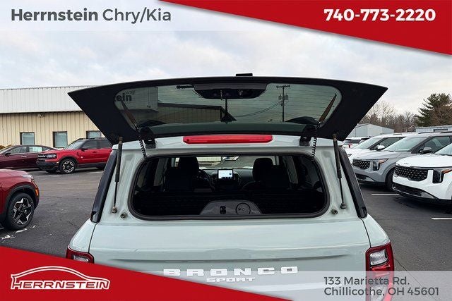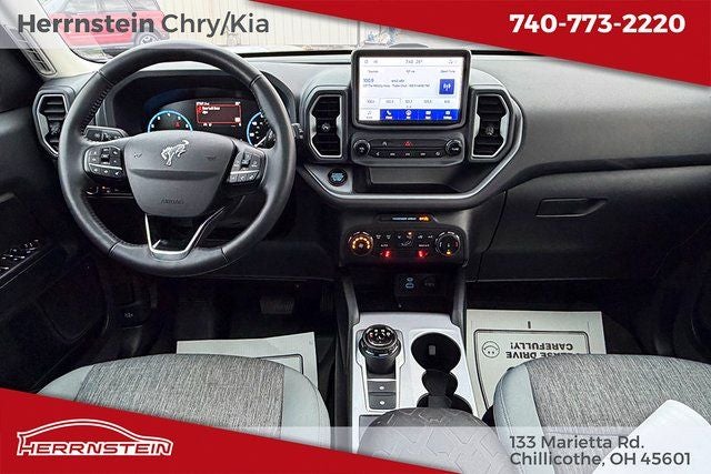 Herrnstein Auto Group is pleased to offer this 2022 Ford Bronco Sport Big Bend in Cactus Gray with Medium Dark Slate Cloth. This Bronco Sport is very well equipped with 1 Owner, Accident Free History Report, Alloy Wheels, XM/Sirius Satellite Radio, iPod / USB Port, Auxiliary Audio Port, Backup Camera, Touchscreen Control Center, GPS / Navigation System, Bluetooth®, Voice Recognition, Apple CarPlay, Android Auto, Fog Lights, Trailer Tow Package, Remote Start, Heated Mirrors, Heated Seats, Sunroof / Moonroof, Blind Spot Monitor, Adaptive Cruise Control, and Collision Avoidance System Class II Trailer Tow Package w/Trailer Sway Control, Convenience Package (Front Driver & Passenger Seatback Zipper Pockets, Heated Front Bucket Seats, Intelligent Access (Lock/Unlock), Leather-Wrapped Steering Wheel, LED Fog Lamps, Rear Parking Sensors, Universal Garage Door Opener (UGDO), and Wireless Charging Pad), Equipment Group 200A, Ford Co-Pilot360 Assist+ (Evasive Steering Assist, Intelligent Adaptive Cruise Control w/Stop & Go, and Voice-Activated Touchscreen Navigation System), 3.80 Axle Ratio, 4-Wheel Disc Brakes, 4G LTE Wi-Fi Hotspot Credit, 6 Speakers, ABS brakes, Air Conditioning, Alloy wheels, AM/FM radio: SiriusXM, AM/FM Stereo, Auto High-beam Headlights, Automatic temperature control, Brake assist, Cargo Management System, Compass, Delay-off headlights, Driver door bin, Driver vanity mirror, Dual front impact airbags, Dual front side impact airbags, Electronic Stability Control, Emergency communication system: SYNC 3 911 Assist, Four wheel independent suspension, Front anti-roll bar, Front Bucket Seats, Front Center Armrest, Front reading lights, Fully automatic headlights, Heated door mirrors, Illuminated entry, Knee airbag, Low tire pressure warning, Occupant sensing airbag, Outside temperature display, Overhead airbag, Overhead console, Panic alarm, Passenger door bin, Passenger vanity mirror, Power door mirrors, Power Moonroof, Power steering, Power windows, Radio data system, Rear anti-roll bar, Rear reading lights, Rear seat center armrest, Rear window defroster, Rear window wiper, Remote keyless entry, Roof rack: rails only, Rubberized Second Row Seat Backs, Security system, SiriusXM Radio, Speed control, Speed-sensing steering, Speed-Sensitive Wipers, Split folding rear seat, Steering wheel mounted audio controls, SYNC 3 Communications & Entertainment System, SYNC 3/Apple CarPlay/Android Auto, Tachometer, Telescoping steering wheel, Tilt steering wheel, Traction control, Trip computer, Unique Cloth Front Bucket Seats, Variably intermittent wipers, and Wheels: 17 Carbonized Gray-Painted Aluminum. 25/28 City/Highway MPG