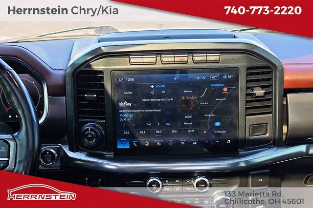Herrnstein Auto Group is pumped up to offer this 2022 Ford F-150 Lariat in Red Metallic with Black Leather. This F-150 is very well equipped with Bed Utility Package (BoxLink, LED Box Lighting, Power Tailgate, and Tailgate Step w/Tailgate Work Surface), Equipment Group 502A High, Ford Co-Pilot360 Assist 2.0 (DISC) (Connected Built-In Navigation, Evasive Steering Assist, Intelligent Adaptive Cruise Control w/Stop & Go, Intersection Assist, and Speed Sign Recognition), FX4 Off-Road Package (Tray Style Floor Liner (47W)), Lariat Chrome Appearance Package (6 Bright Polished Running Board, Chrome 2-Bar Grille w/4 Minor Bars, Chrome Door & Tailgate Handles w/Body-Color Bezel, Chrome Single-Tip Exhaust, Chrome Skull Caps on Exterior Mirrors, and Wheels: 18 Chrome-Like PVD), Lariat Sport Appearance Package (Accent-Color Angular Step Bars, Body-Color Front & Rear Bumpers, Box Side Decals, Dark 2-Bar & 1 Minor Bar Style Grille, and Wheels: 18 6-Spoke Machined Aluminum), Trailer Tow Package (Class IV Trailer Hitch Receiver, Integrated Trailer Brake Controller, and Pro Trailer Backup Assist), 4WD, 18 Machined-Aluminum Wheels, 360 Degree Camera, 4-Wheel Disc Brakes, 7 Speakers, ABS brakes, Adjustable pedals, Air Conditioning, Alloy wheels, AM/FM radio: SiriusXM with 360L, Auto High-beam Headlights, Auto Start-Stop Removal, Auto-dimming door mirrors, Auto-dimming Rear-View mirror, Automatic temperature control, Brake assist, Bumpers: chrome, Compass, Delay-off headlights, Driver door bin, Driver vanity mirror, Dual front impact airbags, Dual front side impact airbags, Electronic Stability Control, Emergency communication system: SYNC 4 911 Assist, Extended Range 36 Gallon Fuel Tank, Exterior Parking Camera Rear, Front anti-roll bar, Front Center Armrest w/Storage, Front dual zone A/C, Front fog lights, Front reading lights, Front wheel independent suspension, Fully automatic headlights, Heated door mirrors, Heated front seats, Illuminated entry, Interior Work Surface, Leather-Trimmed 40/20/40 Front Seat, Low tire pressure warning, Memory seat, Occupant sensing airbag, Outside temperature display, Overhead airbag, Overhead console, Panic alarm, Passenger door bin, Passenger vanity mirror, Pedal memory, Power door mirrors, Power driver seat, Power passenger seat, Power steering, Power windows, Power-Deployable Running Boards, Radio data system, Radio: AM/FM SiriusXM w/360L, Radio: B&O Unleashed Sound System by Bang & Olufsen, Rear reading lights, Rear seat center armrest, Rear step bumper, Rear window defroster, Remote keyless entry, Security system, Speed control, Speed-sensing steering, Split folding rear seat, Steering wheel mounted audio controls, SYNC 4 w/Enhanced Voice Recognition, Tachometer, Telescoping steering wheel, Tilt steering wheel, Traction control, Trip computer, Turn signal indicator mirrors, Twin Panel Moonroof, Variably intermittent wipers, Ventilated front seats, Voltmeter, and Wheel Well Liner.