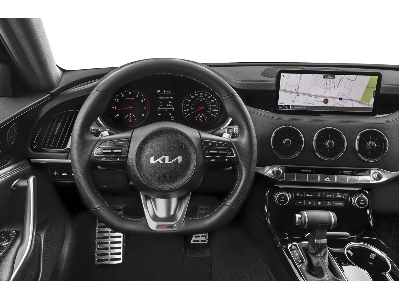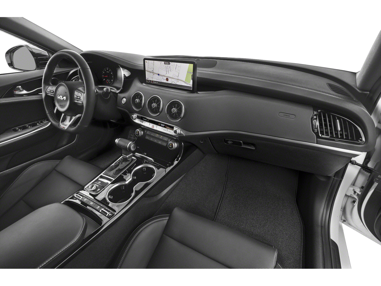 Herrnstein Auto Group is pumped up to offer this 2022 Kia Stinger GT-Line in Ceramic Silver with Black Leather. This Stinger is very well equipped with 4-Wheel Disc Brakes, 9 Speakers, ABS brakes, Air Conditioning, Alloy wheels, AM/FM radio: SiriusXM, Anti-whiplash front head restraints, Apple CarPlay & Android Auto, Auto High-beam Headlights, Auto-dimming Rear-View mirror, Automatic temperature control, Brake assist, Bumpers: body-color, Carpeted Floor Mat, Delay-off headlights, Driver door bin, Driver vanity mirror, Dual front impact airbags, Dual front side impact airbags, Electronic Stability Control, Emergency communication system: UVO eServices, Exterior Parking Camera Rear, Four wheel independent suspension, Front anti-roll bar, Front Bucket Seats, Front Center Armrest, Front dual zone A/C, Front reading lights, Fully automatic headlights, Heated door mirrors, Heated Front Bucket Seats, Heated front seats, Illuminated entry, Knee airbag, Leather Seat Trim, Low tire pressure warning, Navigation System, Occupant sensing airbag, Outside temperature display, Overhead airbag, Overhead console, Panic alarm, Passenger door bin, Passenger vanity mirror, Power door mirrors, Power driver seat, Power steering, Power windows, Radio: AM/FM/HD Audio System, Rain sensing wipers, Rear air conditioning, Rear anti-roll bar, Rear seat center armrest, Rear window defroster, Remote keyless entry, Security system, Smart Key w/ Push Button and Remote Start, Speed control, Speed-Sensitive Wipers, Split folding rear seat, Sport steering wheel, Steering wheel mounted audio controls, Tachometer, Telescoping steering wheel, Tilt steering wheel, Traction control, Trip computer, Turn signal indicator mirrors, Variably intermittent wipers, and Wheels: 8.0J x 18 Alloy.