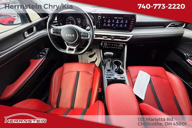 Herrnstein Auto Group is excited to offer this 2023 Kia K5 GT-Line in Wolf Gray with Black Cloth. This K5 is very well equipped with GT-Line Premium Package (Forward Collision Avoidance-Assist, Highway Driving Assist, LED Projection Headlamps, and Smart Cruise Control w/Stop & Go), GT-Line Red Interior Package, 4-Wheel Disc Brakes, 6 Speakers, ABS brakes, Air Conditioning, Alloy wheels, AM/FM radio: SiriusXM, Apple CarPlay & Android Auto, Auto High-beam Headlights, Automatic temperature control, Brake assist, Bumpers: body-color, Carpeted Floor Mats, Cloth/SynTex Seat Trim, Delay-off headlights, Driver door bin, Driver vanity mirror, Dual front impact airbags, Dual front side impact airbags, EC Mirror w/Homelink, Electronic Stability Control, Four wheel independent suspension, Front anti-roll bar, Front Bucket Seats, Front Center Armrest, Front dual zone A/C, Front fog lights, Front reading lights, Fully automatic headlights, Heated door mirrors, Illuminated entry, Knee airbag, Low tire pressure warning, Navigation System, Occupant sensing airbag, Outside temperature display, Overhead airbag, Overhead console, Panic alarm, Passenger door bin, Passenger vanity mirror, Power door mirrors, Power driver seat, Power steering, Power windows, Radio data system, Radio: AM/FM/MP3 Audio System, Rear anti-roll bar, Rear seat center armrest, Rear side impact airbag, Rear window defroster, Remote keyless entry, Security system, Speed control, Speed-sensing steering, Split folding rear seat, Spoiler, Sport steering wheel, Steering wheel mounted audio controls, Tachometer, Telescoping steering wheel, Tilt steering wheel, Traction control, Trip computer, Turn signal indicator mirrors, Variably intermittent wipers, and Wheels: 18 Gloss Black Machined Finish Alloy.