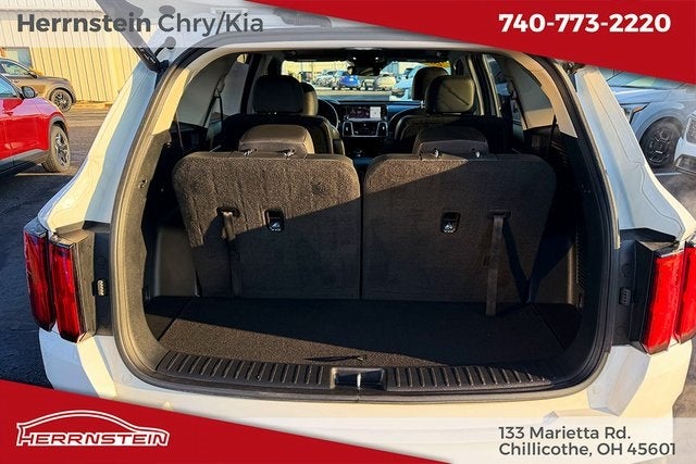 Herrnstein Auto Group is pumped up to offer this 2023 Kia Sorento SX in Glacial White Pearl with Black Artificial Leather. This Sorento is very well equipped with 1 Owner, Accident Free History Report, Alloy Wheels, XM/Sirius Satellite Radio, iPod / USB Port, Auxiliary Audio Port, Backup Camera, Touchscreen Control Center, Kia Connect, GPS / Navigation System, Bluetooth®, Voice Recognition, Apple CarPlay, Android Auto, Remote Start, Heated Seats, Sunroof / Moonroof, Lane Keeping Assist, Blind Spot Monitor, and Adaptive Cruise Control AWD, Navigation System, 3.316 Axle Ratio, 3rd row seats: split-bench, 4-Wheel Disc Brakes, 6 Speakers, ABS brakes, Air Conditioning, Alloy wheels, AM/FM radio: SiriusXM, Apple CarPlay & Android Auto, Auto High-beam Headlights, Auto-dimming Rear-View mirror, Automatic temperature control, Brake assist, Bumpers: body-color, Carpet Floor Mats, Delay-off headlights, Driver door bin, Driver vanity mirror, Dual front impact airbags, Dual front side impact airbags, Electronic Stability Control, Emergency communication system, Exterior Parking Camera Rear, Four wheel independent suspension, Front anti-roll bar, Front Bucket Seats, Front Center Armrest, Front dual zone A/C, Front fog lights, Front reading lights, Fully automatic headlights, Heated door mirrors, Heated Front Bucket Seats, Heated front seats, Illuminated entry, Knee airbag, Leather steering wheel, Low tire pressure warning, Occupant sensing airbag, Outside temperature display, Overhead airbag, Overhead console, Panic alarm, Passenger door bin, Passenger vanity mirror, Power door mirrors, Power driver seat, Power Liftgate, Power moonroof, Power passenger seat, Power steering, Power windows, Radio data system, Radio: AM/FM Audio System, Rain sensing wipers, Rear air conditioning, Rear anti-roll bar, Rear reading lights, Rear window defroster, Rear window wiper, Remote keyless entry, Roof rack: rails only, Security system, Smart Key w/ Push Button and Remote Start, Speed control, Speed-sensing steering, Split folding rear seat, Spoiler, Steering wheel mounted audio controls, SynTex Artificial Leather Seat Trim, Tachometer, Telescoping steering wheel, Tilt steering wheel, Traction control, Trip computer, Turn signal indicator mirrors, Variably intermittent wipers, and Wheels: 8.5J x 20 Gloss Black Alloy. 22/27 City/Highway MPG