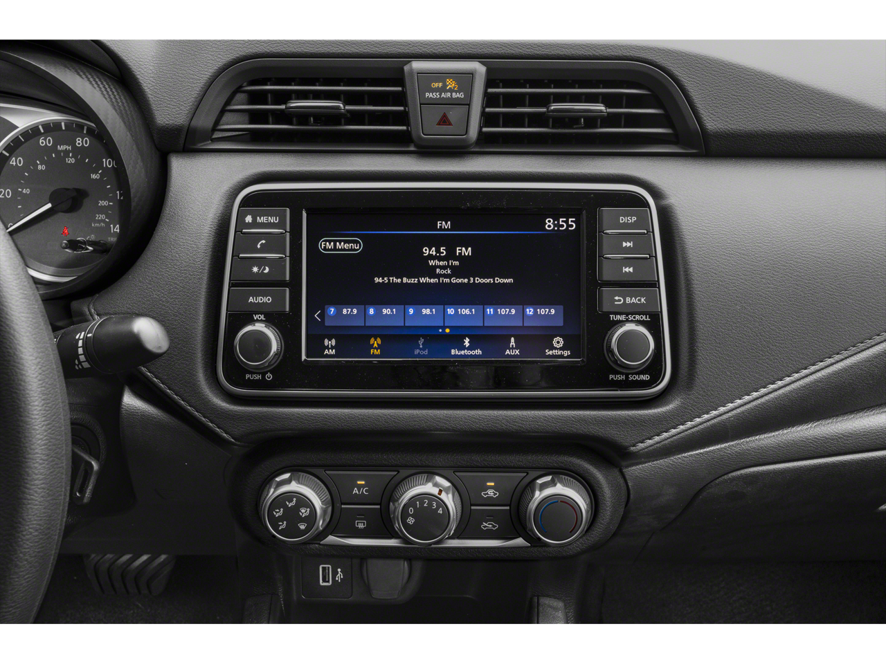 - Radio: AM/FM Audio System -inc: RDS, MP3, aux-in, 7" color touchscreen display, Bluetooth® hands-free phone system, streaming audio via Bluetooth®, interface for iPod and other compatible devices, hands-free text messaging assistant, Siri Eyes Free/Google Assistant voice recognition, 4 speakers, 12-volt DC power outlet and 3 USB ports (2-charge only)