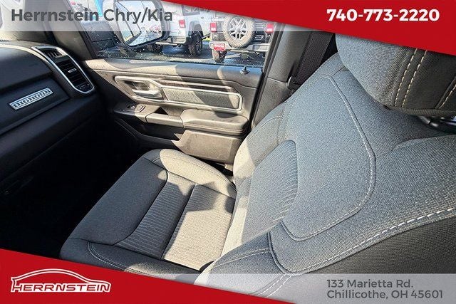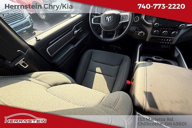 Herrnstein Auto Group is very proud to offer this 2023 Ram 1500 Big Horn/Lone Star in Bright White Clearcoat with Black Cloth. This 1500 is very well equipped with 1 Owner, Accident Free History Report, Alloy Wheels, XM/Sirius Satellite Radio, iPod / USB Port, Auxiliary Audio Port, Backup Camera, Touchscreen Control Center, uConnect, Bluetooth®, Voice Recognition, Apple CarPlay, Android Auto, Fog Lights, Trailer Tow Package, Remote Start, Heated Steering Wheel, Heated Mirrors, Heated Seats, and Running Boards Big Horn Level 2 Equipment Group (DISC) (115V Auxiliary Power Outlet, 2nd Row In Floor Storage Bins, 400W Inverter, 4G LTE Wi-Fi Hot Spot, 8.4 Touchscreen Display, 9 Amplified Speakers w/Subwoofer, Air Conditioning ATC w/Dual Zone Control, Apple CarPlay, Auto-Dimming Exterior Driver Mirror, Auto-Dimming Rear-View Mirror, Black Exterior Mirrors, Black Premium Power Mirrors, Bluetooth® Handsfree Phone & Audio, Class IV Receiver Hitch, Cluster 7.0 TFT Color Display, Connectivity - US/Canada, Convex Wide-Angle Exterior Mirror Insert, Electric Shift-On-Demand Transfer Case, Exterior Mirrors Courtesy Lamps, Exterior Mirrors w/Heating Element, Exterior Mirrors w/Supplemental Signals, For Details, Visit DriveUconnect.com, For More Info, Call 800-643-2112, Front Fog Lamps, Glove Box Lamp, Google Android Auto, GPS Antenna Input, Heated Front Seats, Heated Steering Wheel, Integrated Center Stack Radio, LED Footwell Lighting, Media Hub w/2 Charge Only USBs, ParkSense Front/Rear Park Assist w/Stop, Power 2-Way Driver Lumbar Adjust, Power 8-Way Driver Seat, Power Adjustable Pedals, Power-Folding Mirrors, Radio: Uconnect 5 W w/8.4 Display, Rear Dome w/On/Off Switch Lamp, Rear Power Sliding Window, Rear Window Defroster, Remote Start System, Security Alarm, SiriusXM Satellite Radio, Sun Visors w/Illuminated Vanity Mirrors, Universal Garage Door Opener, and USB Host Flip), Night Edition (3 Rear Seat Head Restraints, 4 Way Front Headrests, Accent Color Door Handles, Accent Color Premium Power Mirrors, Anti-Spin Differential Rear Axle, Black Exterior Truck Badging, Black Headlamp Bezels, Black Interior Accents, Black Painted Exterior Mirrors Caps, Body Color Front Bumper, Body Color Rear Bumper w/Step Pads, Bucket Seats, Center Console Parts Module, Deluxe Cloth Bucket Seats, Dual Exhaust w/Black Tips, Front Seat Back Map Pockets, Full Length Floor Console, Grille Surround 1 Black Texture 2 Black, Manual Adjust 4-Way Front Passenger Seat, RAM Grille Badge - Black, Rear 60/40 Folding Seat, Rear Center Armrest, and Wheels: 20 x 9.0 Premium Paint/Polished), Quick Order Package 27Z Big Horn (Big Horn Badge), 3.21 Rear Axle Ratio, 4-Wheel Disc Brakes, 48V Belt Starter Generator, 6 Speakers, ABS brakes, Active Noise Control System, Air Conditioning, Alloy wheels, AM/FM radio, Brake assist, Bumpers: chrome, Cloth Bench Seat, Compass, Delay-off headlights, Driver door bin, Dual front impact airbags, Dual front side impact airbags, Dual Rear Exhaust w/Bright Tips, Electronic Stabilit