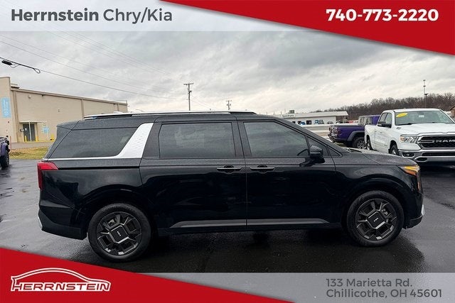 Herrnstein Auto Group is pleased to offer this 2025 Kia Carnival Hybrid EX in Aurora Black Pearl with Taupe/Off-Black Artificial Leather. This Carnival Hybrid is very well equipped with 1 Owner, Accident Free History Report, Alloy Wheels, iPod / USB Port, Auxiliary Audio Port, Backup Camera, Touchscreen Control Center, GPS / Navigation System, Bluetooth®, Voice Recognition, Apple CarPlay, Android Auto, 3rd Row Seating, Remote Start, Heated Mirrors, Heated Seats, Lane Keeping Assist, Blind Spot Monitor, Adaptive Cruise Control, Collision Avoidance System, and Active Parking Assist 1.6L I4 DGI Hybrid Turbocharged DOHC 16V LEV3-SULEV30, Navigation system: AVN 5.0 Navigation System, 3rd row seats: split-bench, 4-Wheel Disc Brakes, 8 Speakers, ABS brakes, Air Conditioning, Alloy wheels, AM/FM radio: SiriusXM, Apple CarPlay & Android Auto, Artificial Leather Seat Trim, Auto High-beam Headlights, Automatic temperature control, Brake assist, Bumpers: body-color, Cargo Tray, Carpeted Floor Mats (8-Passenger), Compass, Delay-off headlights, Driver door bin, Driver vanity mirror, Dual front impact airbags, Dual front side impact airbags, Electronic Stability Control, Emergency communication system, Exterior Parking Camera Rear, Four wheel independent suspension, Front anti-roll bar, Front Bucket Seats, Front Center Armrest, Front dual zone A/C, Front reading lights, Fully automatic headlights, Heated door mirrors, Heated Front Bucket Seats, Heated front seats, Illuminated entry, Knee airbag, Leather Shift Knob, Leather steering wheel, Low tire pressure warning, Memory seat, Occupant sensing airbag, Outside temperature display, Overhead airbag, Overhead console, Panic alarm, Passenger door bin, Passenger vanity mirror, Power door mirrors, Power driver seat, Power Liftgate, Power passenger seat, Power steering, Power windows, Radio: AVN 5.0 Navigation System w/SiriusXM, Rear air conditioning, Rear anti-roll bar, Rear reading lights, Rear window defroster, Rear window wiper, Reclining 3rd row seat, Remote keyless entry, Security system, Speed control, Speed-sensing steering, Split folding rear seat, Spoiler, Steering wheel mounted audio controls, Tachometer, Telescoping steering wheel, Tilt steering wheel, Traction control, Trailer Prewire Harness, Trip computer, Turn signal indicator mirrors, Variably intermittent wipers, and Wheels: 7.5J x 19 Alloy. 34/31 City/Highway MPG